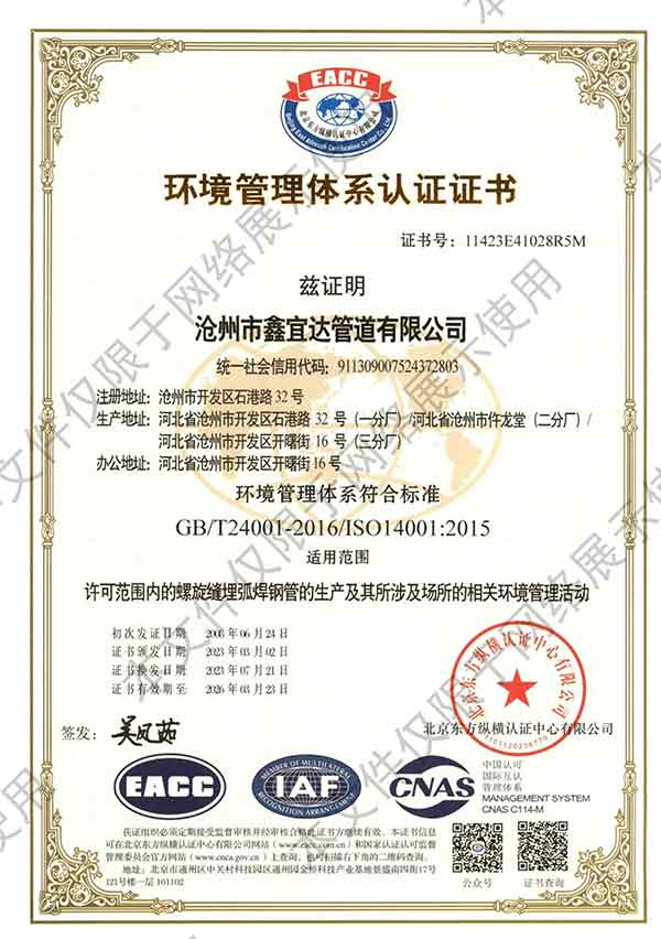 滄州市鑫宜達(dá)管道有限公司社會(huì)責(zé)任報(bào)告
